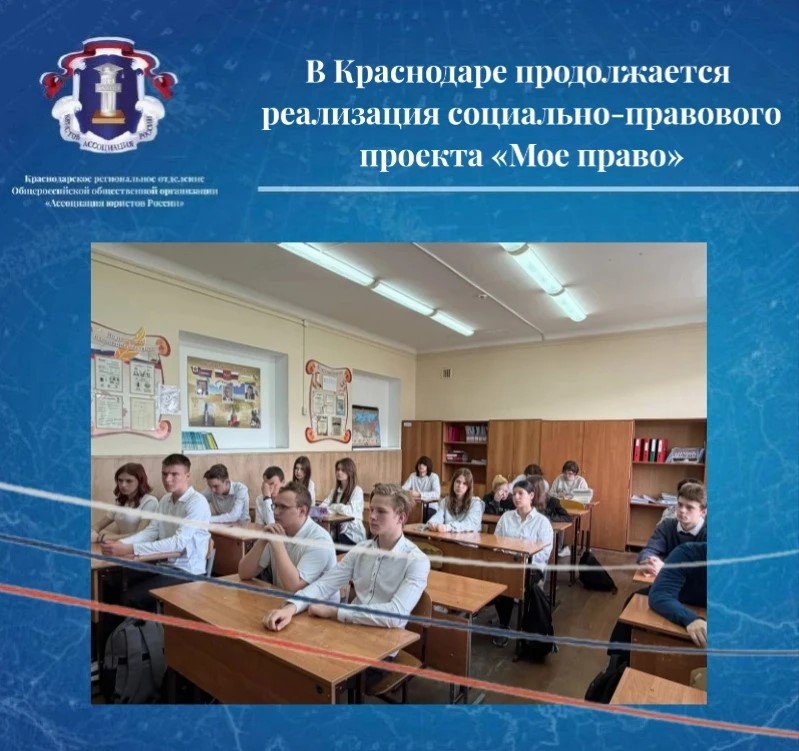 14 апреля в г. Краснодаре в МАОУ СОШ № 31 в рамках масштабного социально-правового проекта «Мое право», реализуемого при поддержке Грантов Губернатора Кубани и направленного на повышение правовой грамотности в вопросах безопасного поведения в сети Интернет и профилактику противоправных действий в цифровой среде, состоялись четыре просветительские лекции на тему: «Дроппинг: как не стать пособником мошенников» для учеников 8-х и 9-х классов. Уроки провели активисты Молодежного движения Краснодарского регионального отделения Ассоциации юристов России: студент ФГБОУ ВО «Кубанский государственный аграрный университет им. И. Т. Трубилина» – Елизавета Мазюта и студент Северо-Кавказского филиала ФГБОУ ВО «Российский государственный университет правосудия им. В. М. Лебедева» – Анна Черниченко.