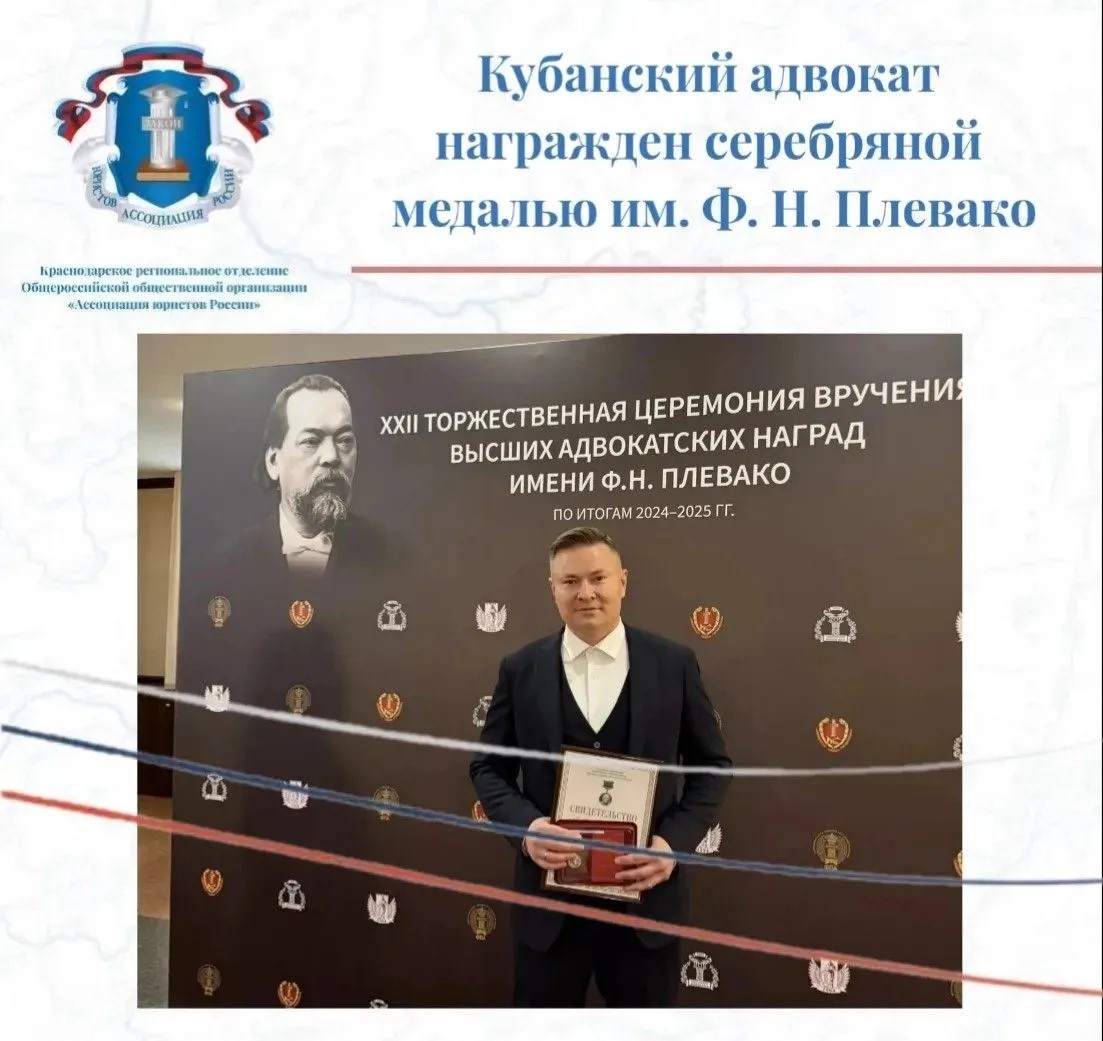 Кубанский адвокат награжден серебряной медалью им. Ф. Н. Плевако